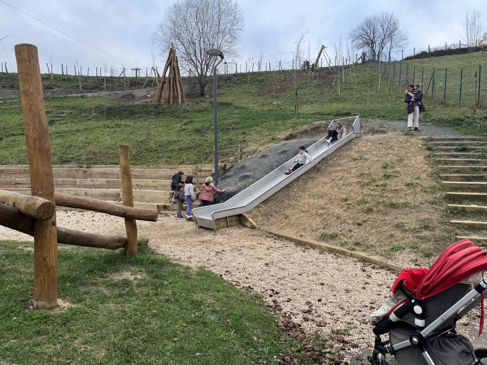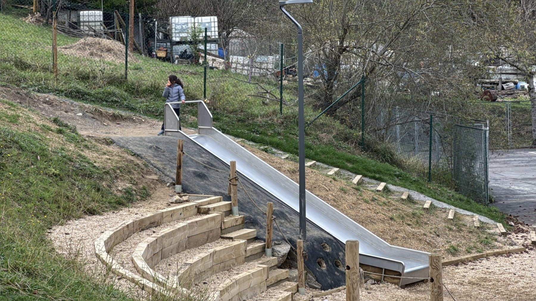 Jolas-parkean tirolina gunea, akazia etxola, enbor pila jokoa, alertze tipia edo magaleko txirrista daude besteak beste. “Adin eta gustu desberdinetako haurrendako espazioak sortu dira. Espazio ez